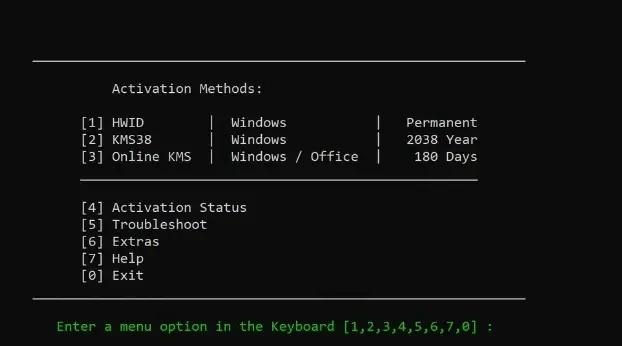 根据脚本提示,在命令提示符中选择您希望的激活选项: